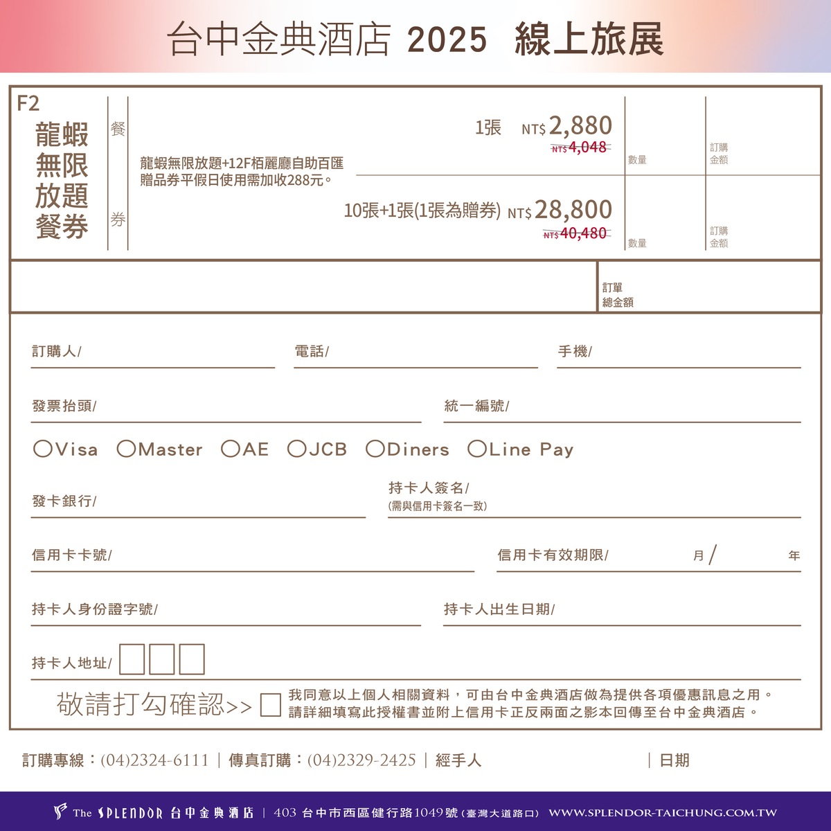 ※持本券用餐須先訂位,訂位專線:04-2324-6111。