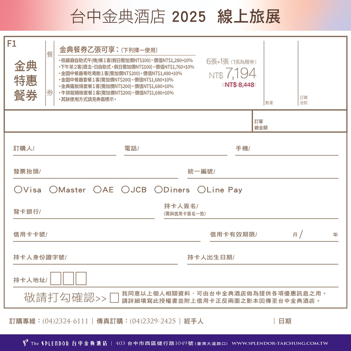 ※持本券用餐須先訂位,訂位專線(04)2324-6111。