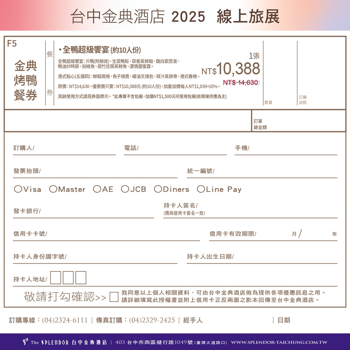 備註3.持本券用餐請提前三日訂位,訂位專線:(04)2324-6114