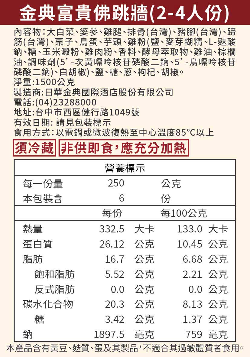 宅配年菜特惠組-金典富貴佛跳牆/2-4人+瑤柱臘味蘿蔔糕/4.5吋