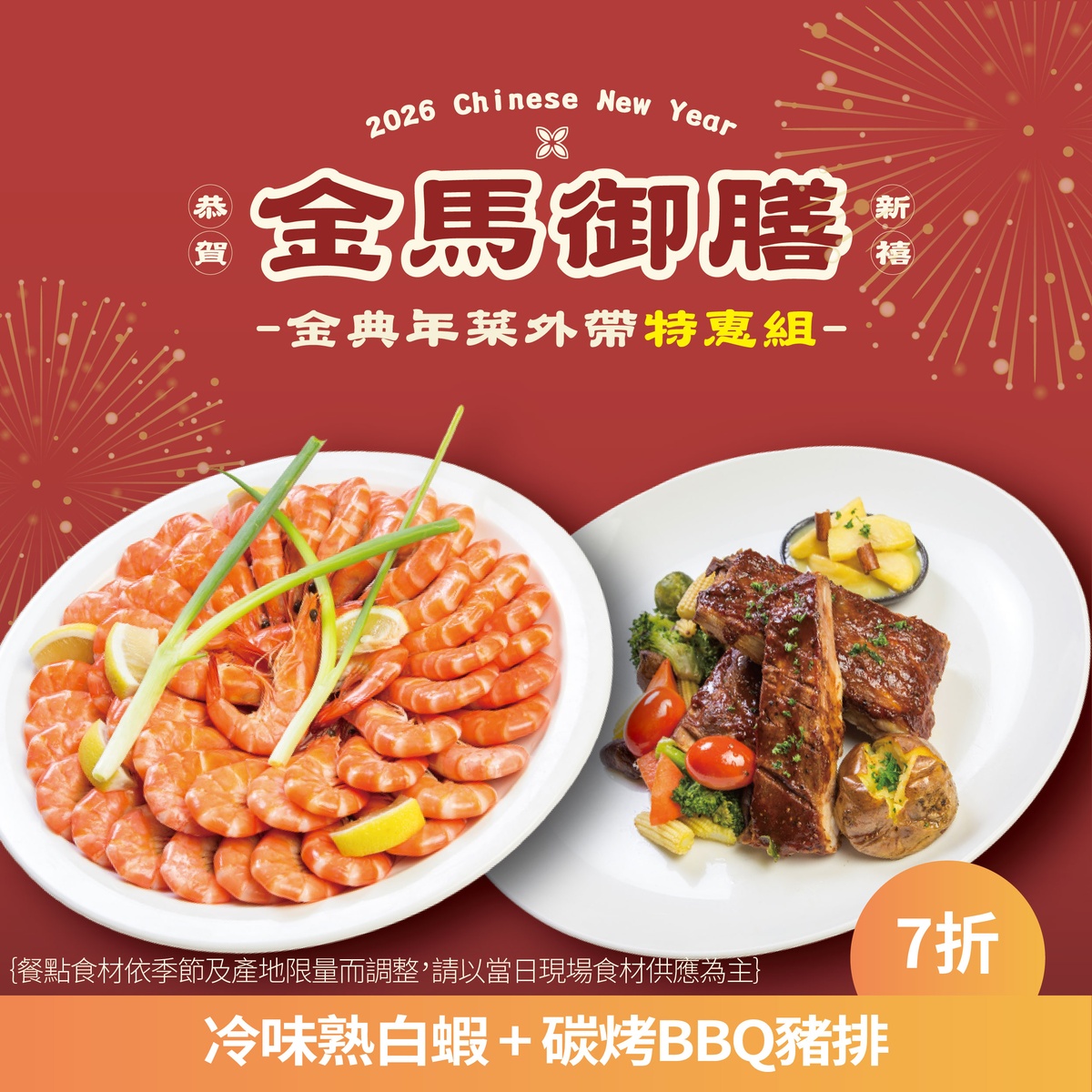 自取年菜特惠組-冷味熟白蝦 + 碳烤BBQ豬排