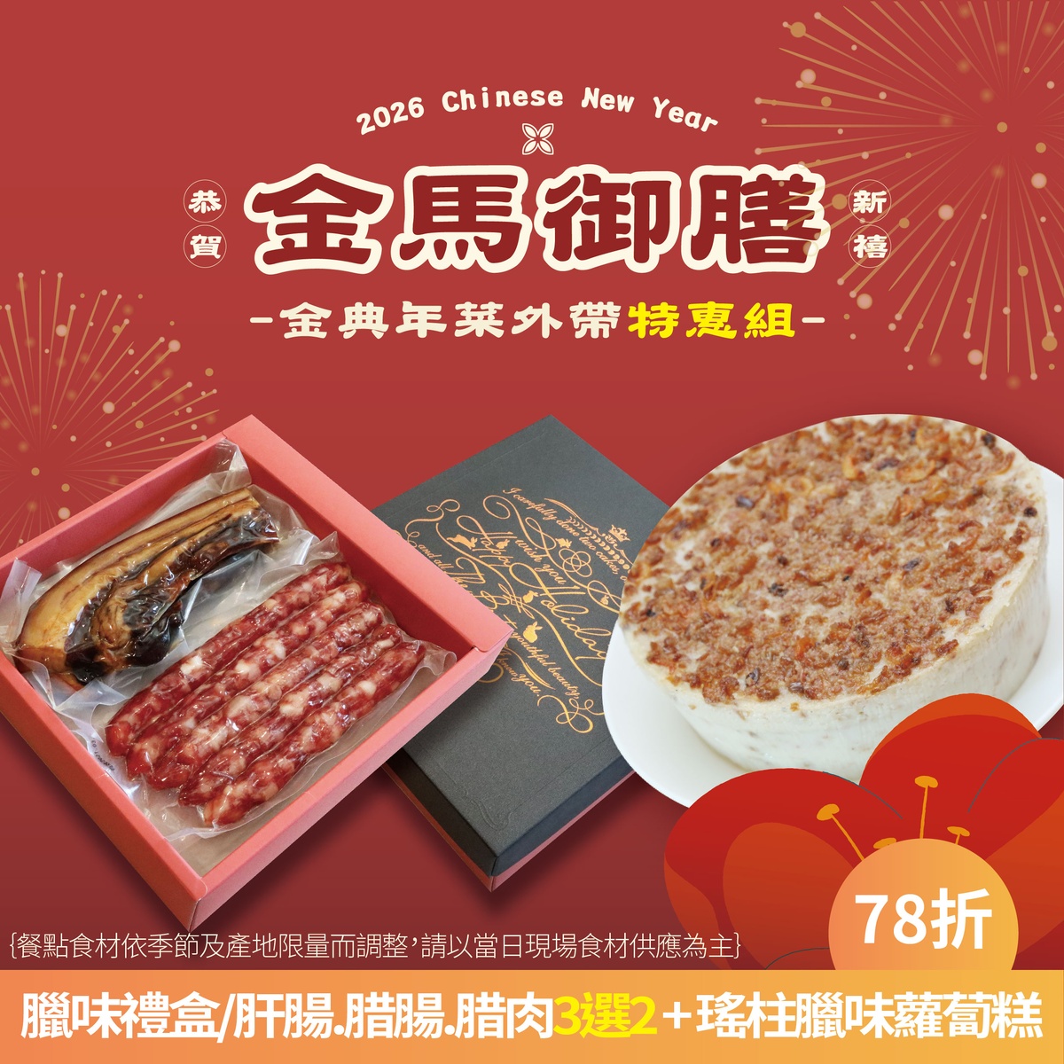 自取年菜特惠組-臘味禮盒 + 瑤柱臘味蘿蔔糕 (肝腸/腊腸/腊肉)3選2